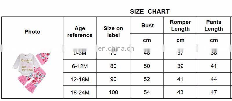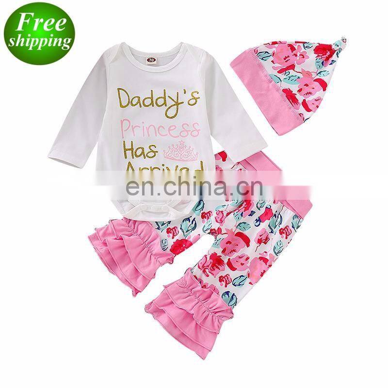 "Daddy's Princess Has Arrived" 2019 White Girls Bodysuits & Ruffle Pants & Hat 3pc Set