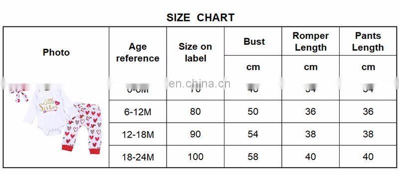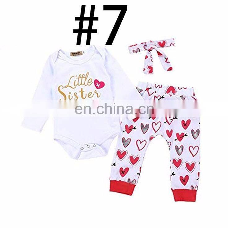 "Little Sister" 2019 Baby Rompers Outfits & Kids Hearts Full Print Pants & Headband 3pc Set