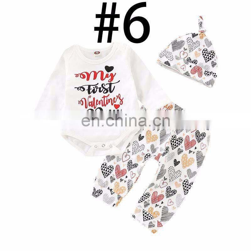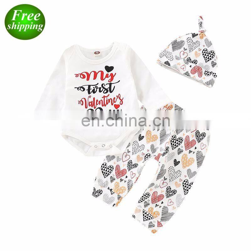 "My First Valentine's Day" 2019 White Kids Valentine Rompers Outfits & Pants & Hat 3pcs Set