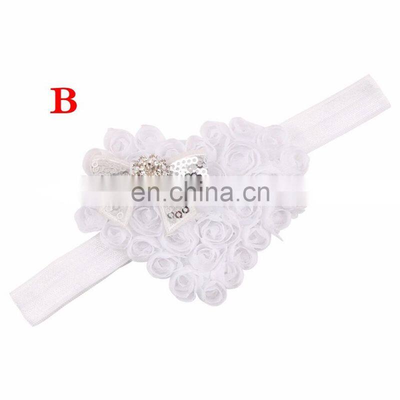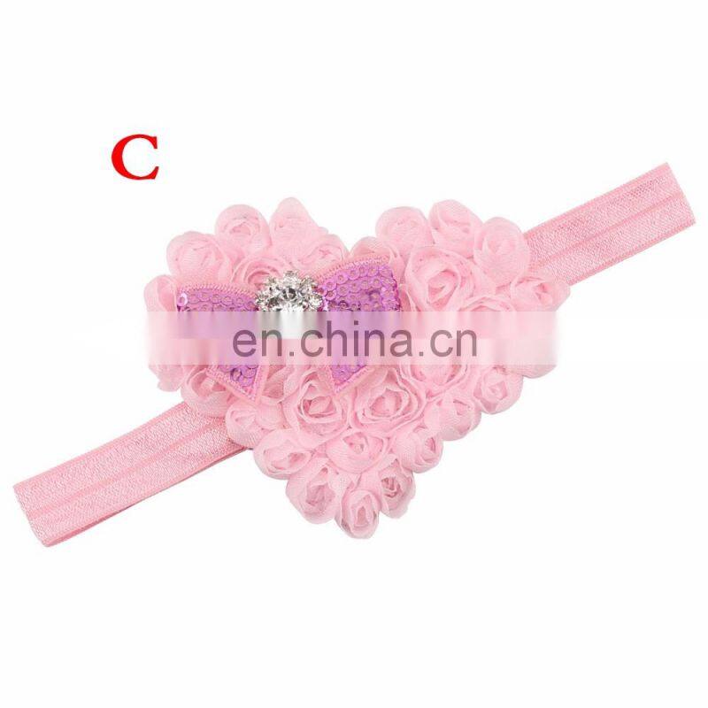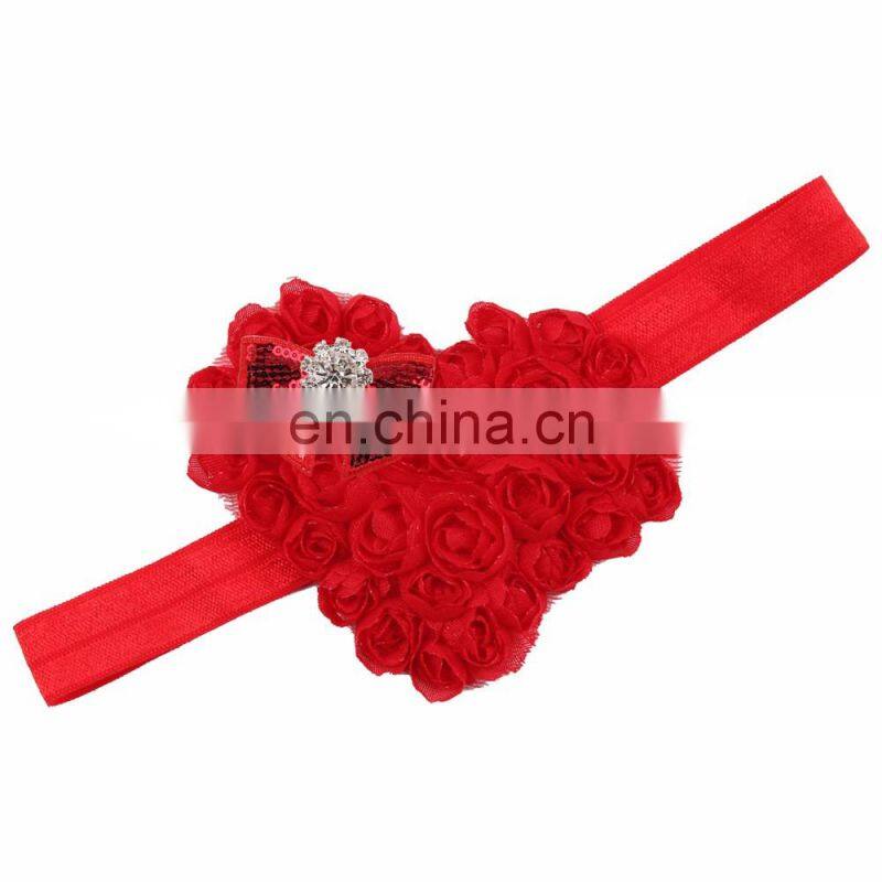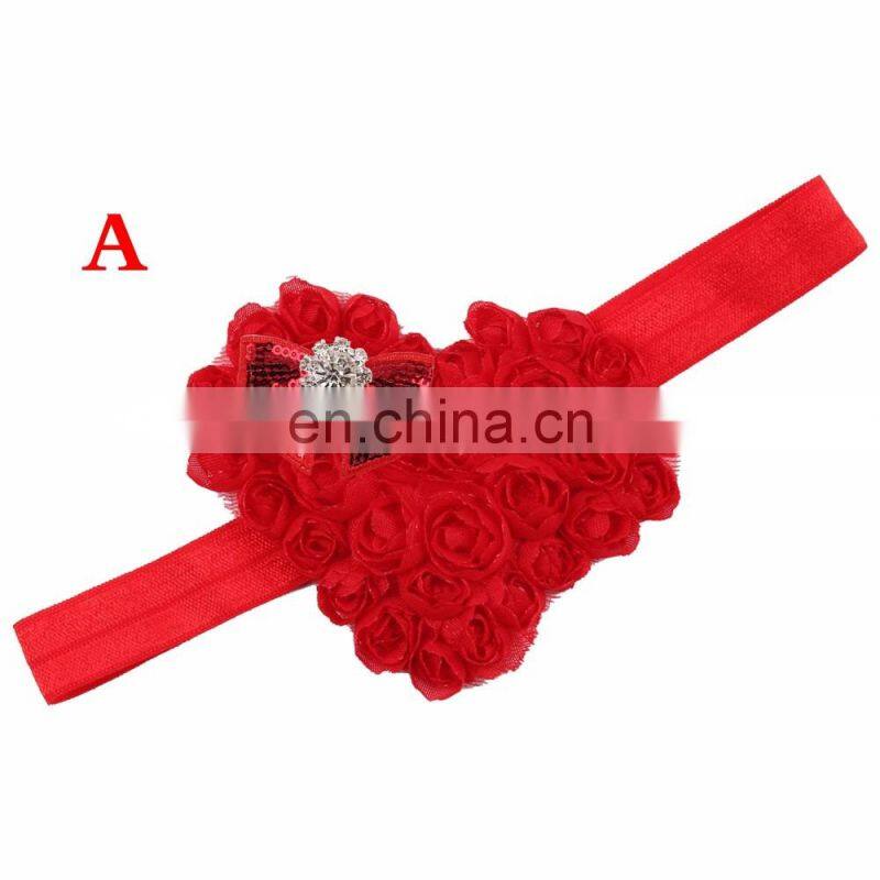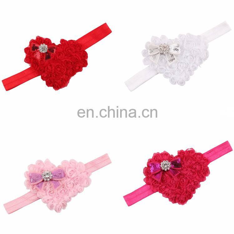 Pink Red Heart Shape Rose Flowers With Sequins Bows Rhinestones Chiffon Soft Hair Bands Girls Headbands Accessories Valentines