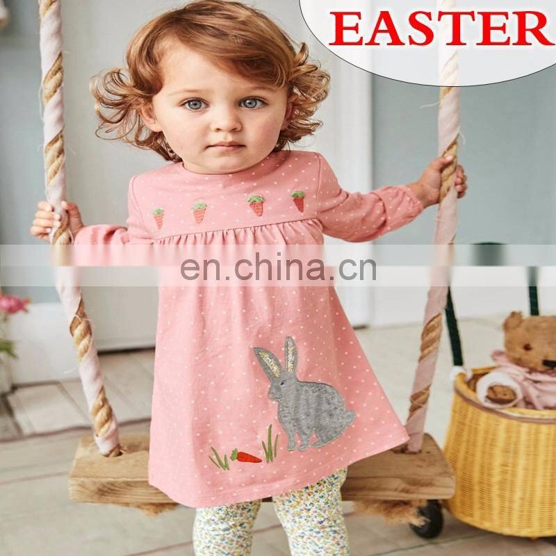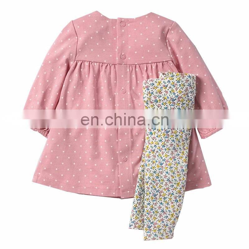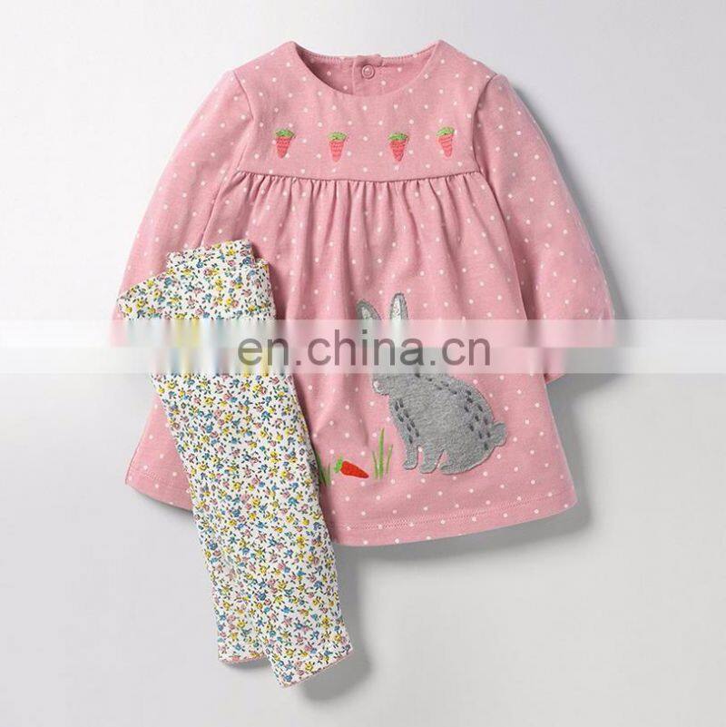 EASTER DAY BUNNY Girls Clothing Set PINK DOT SHIRT & FLORAL PANTS 2PCS SET