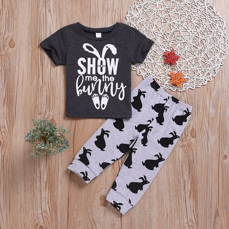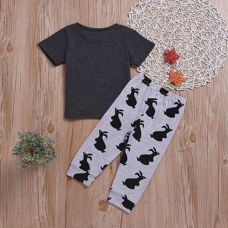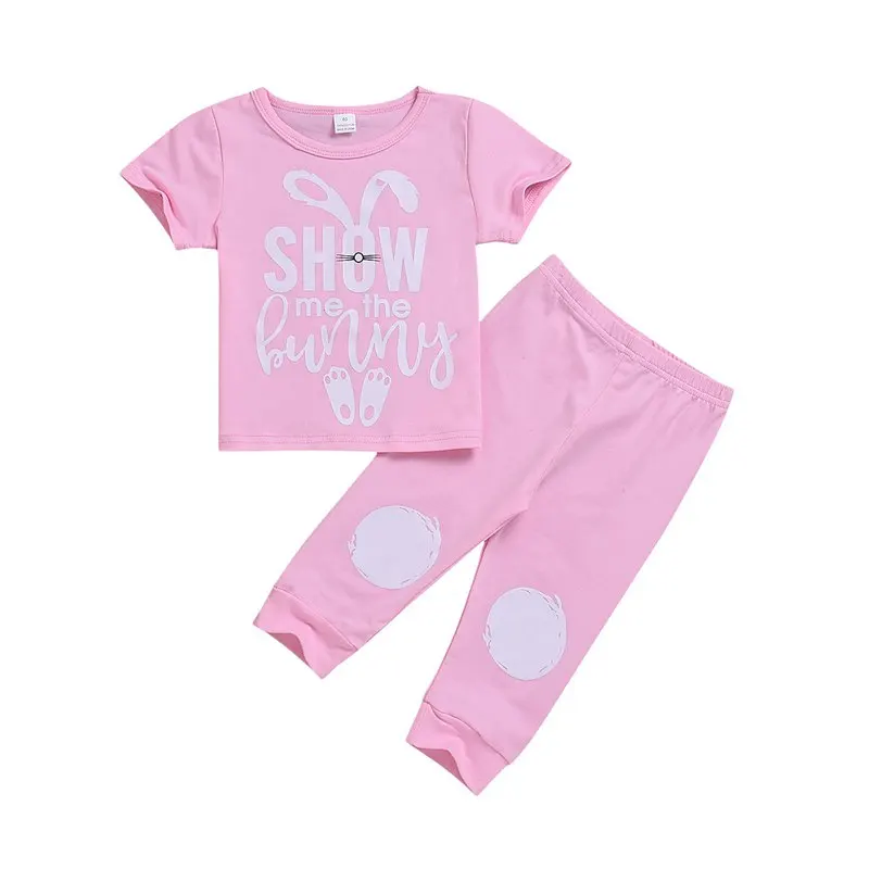 EASTER Day Spring Summer Girls Boutique Outfits Pink Black Short Sleeved Tshirt Top 2pc Set 1-7years