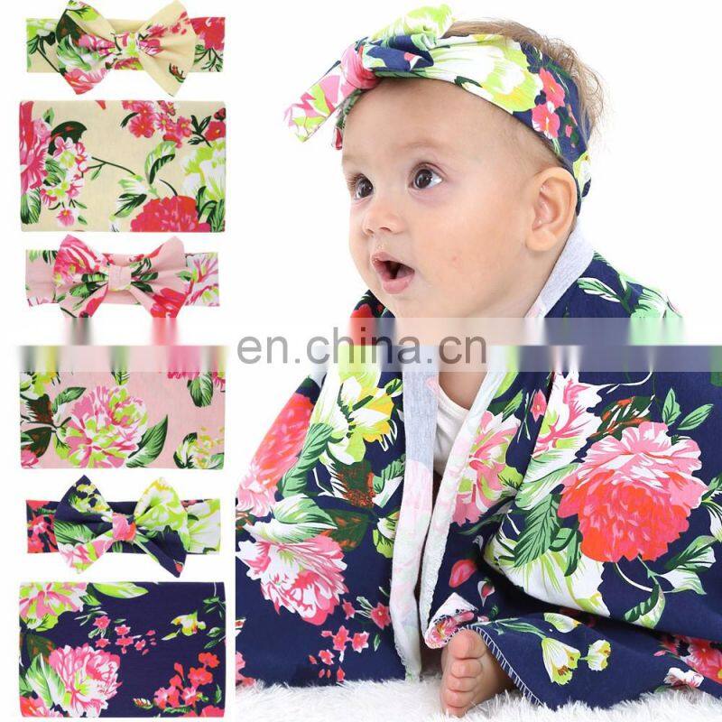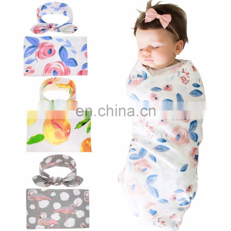 New arrival European fashion 2 piece set (swaddle+headband) flower print newborn baby blanket wraps swaddles