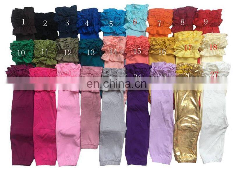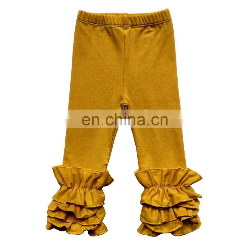 Infant Toddler Girls Double Icing Ruffle Leggings Triple Cotton Boutique Elastic Waist Slacks Joggers 27 Plain Colors 10 Sizes