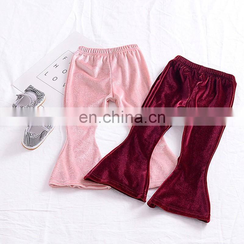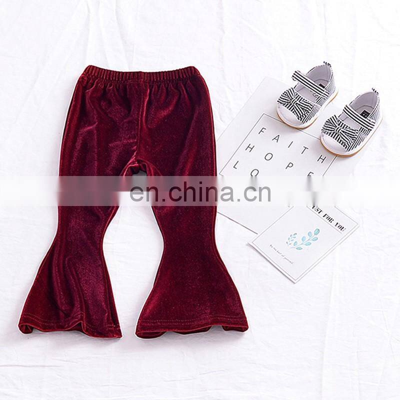 Baby Girls Kids Boho Floral Bell Bottom Velvet Ruffle Leggings Flare Pants 2 Colors Sz80-90