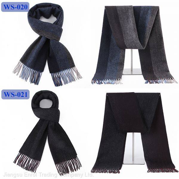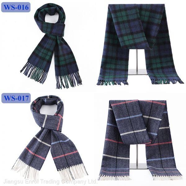 100% Lamb Scarf Strip Solid Plaid Wool Scarf for Men Winter Accessories