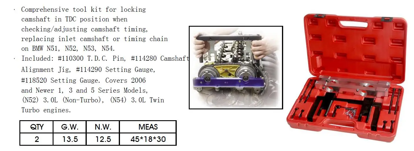 Home > Auto, Motorcycle Parts & Accessories > Vehicle Repair Equipment & Tools > Repair Tools > Auto Comprehensive Tool Kit for Locking Camshaft Checking/adjusting Camshaft Timing FOR BMW N51, N52, N53, N54