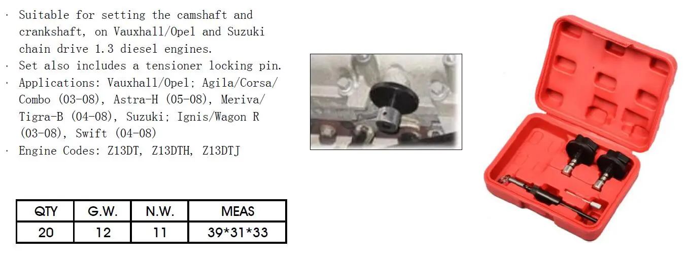 Home > Auto, Motorcycle Parts & Accessories > Vehicle Repair Equipment & Tools > Repair Tools > Diesel Engine Timing Kit for Vauxhall/Opel Suzuki 1.3CDTi/D/DDiS - Chain Drive Tensioner Locking Pin