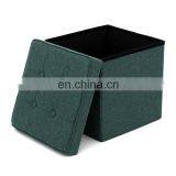 Customized Factory Wholesale Faux Linen Square Folding Storage Box Ottoman Stool for Living Room