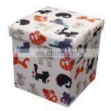 Customized Room Furniture Printing Lovely Cat Polyester Folding Storage Pouf Stool Ottoman