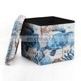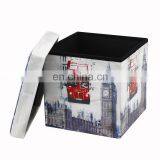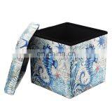 RTS Modern Home Furniture Printing Pvc Leather Folding Storage Fabric Ottoman Stool Practical Box