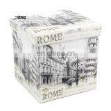 Customized Modern Printing PVC Leather Buildings Ottoman Foldable Storage Ottoman Stool