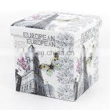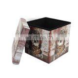 RTS Cube PVC Printing Optional Pattern Folding Stool Storage Ottoman Chair for Bedroom Room