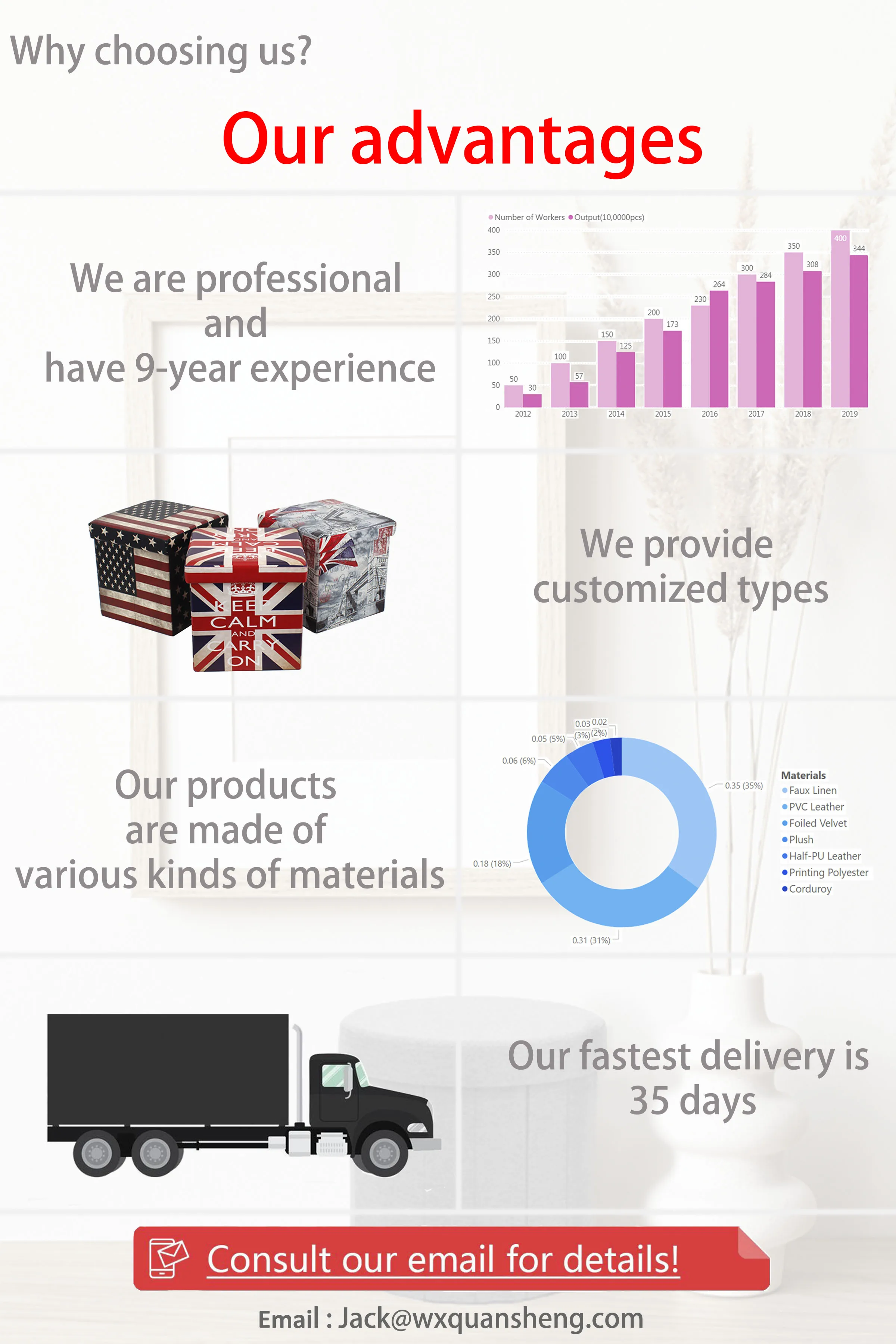 RTS Faux Linen Fabric Polyester Folding Stool Storage Ottoman Customized Design Available