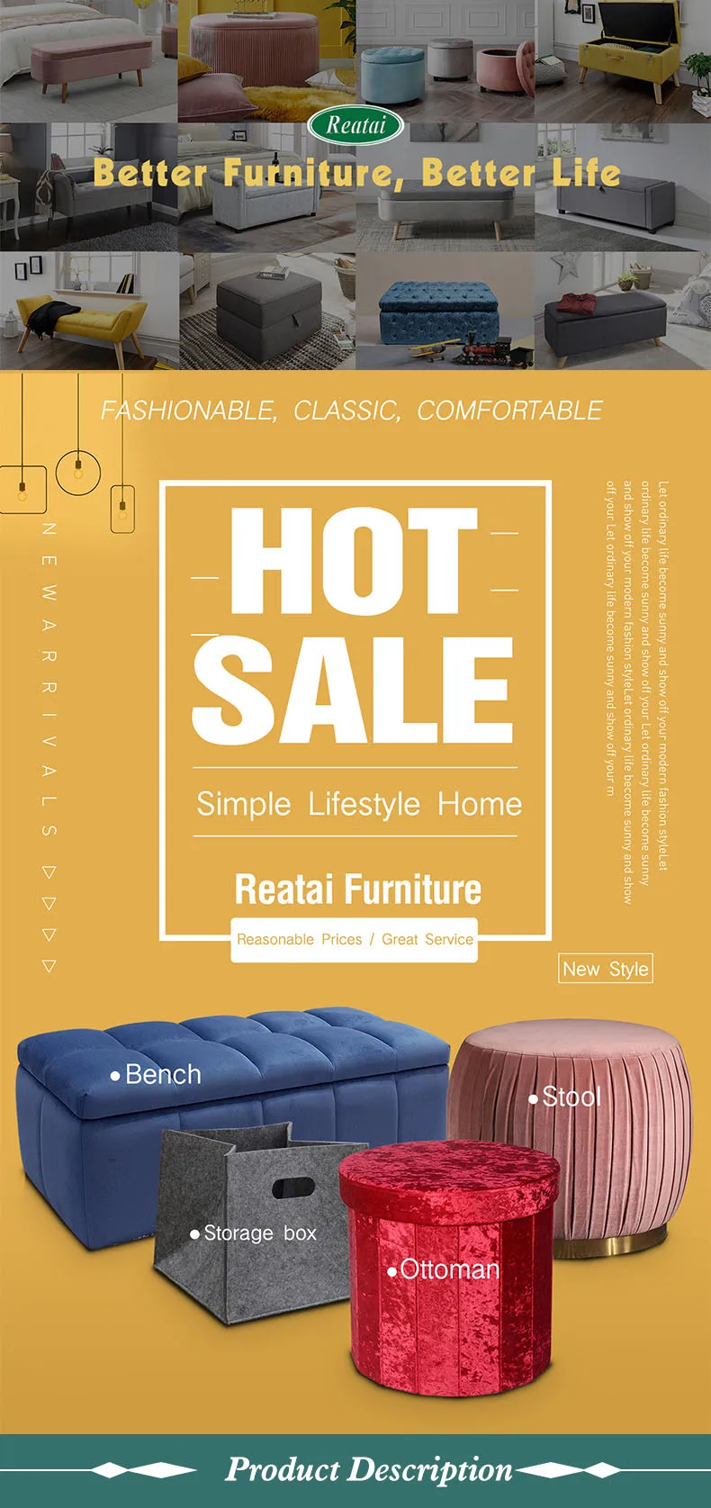 Reatai PVC Leather Folding Square Storage Home Stool Foldable Ottoman for Clothes