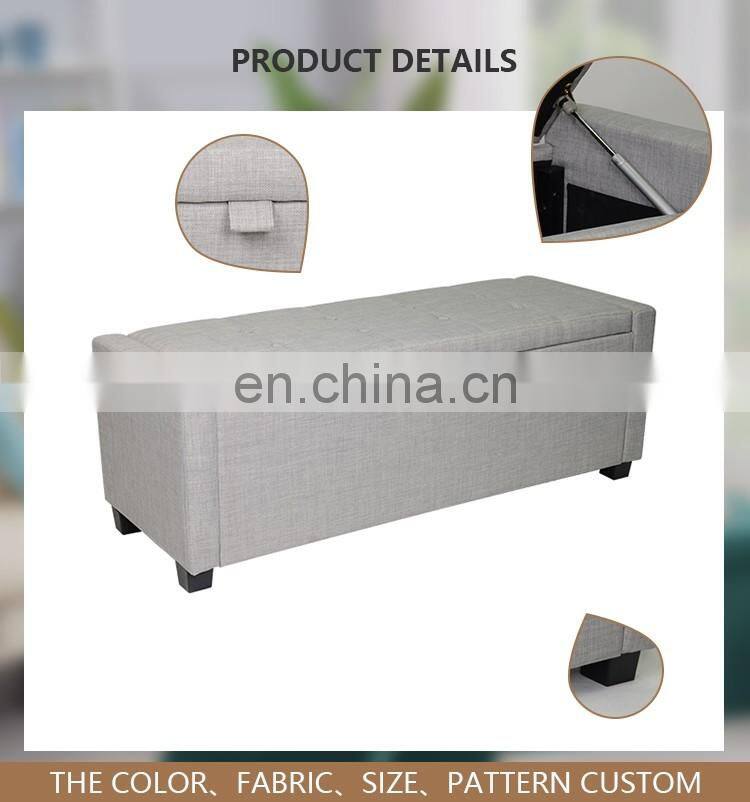 Best Price Light Grey Linen Materials Bed Side Ottoman Sofa Storage Bench Seat