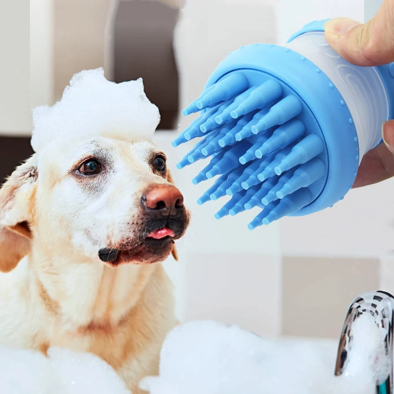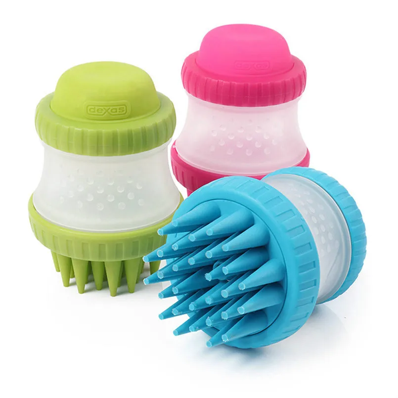 New Design Silicon Bath Liquid Storage Cat Dog Hair Cleaning Grooming Shower Pet Brush