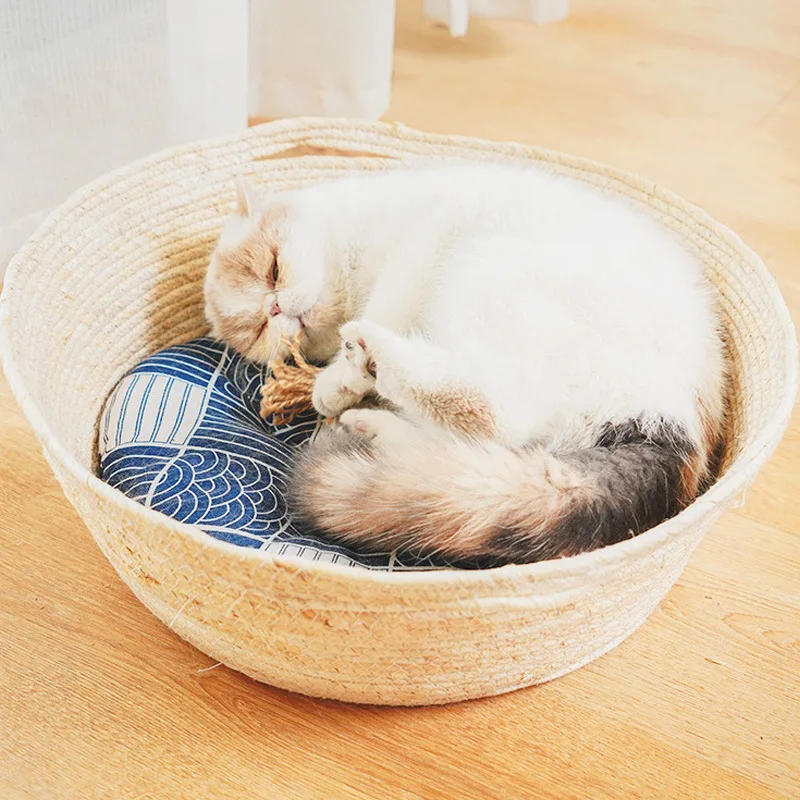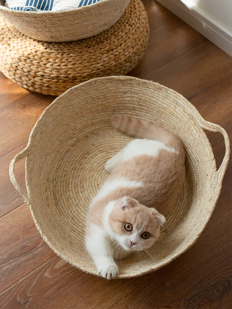 Home > Products > Pet supplies products > Cat Nest Rattan Summer Cool Nest Four Seasons Universal Cat House Cottage Bed House Enclosed Mesh Cat KNIT Four Seasons General