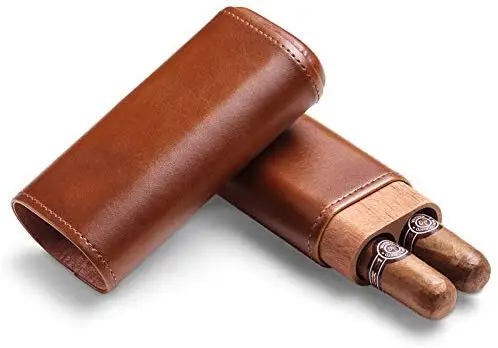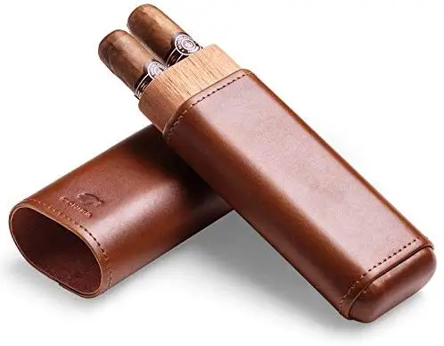 Home > Products > Cigar accessories > HQ CF-0402 Leather Cedar Wood Brown Cigar Case Holder Travel Cigar Case
