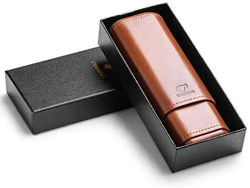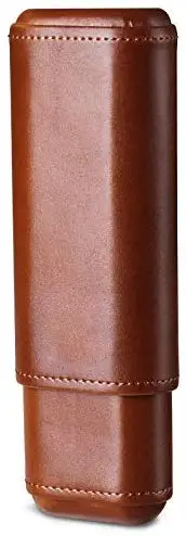 HQ CF-0402 Leather Cedar Wood Brown Cigar Case Holder Travel Cigar Case