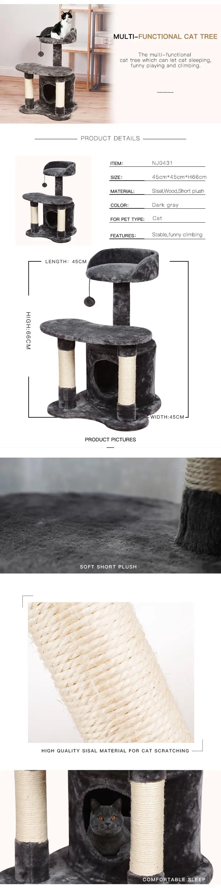 Jianicat Hot Selling Cat Tree House Scratching Post Tree Condo Tower