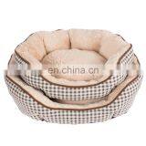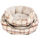 Fashion Indoor Plaid Fabric Beige Plush Pet Bed