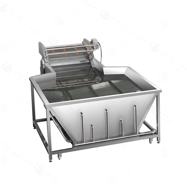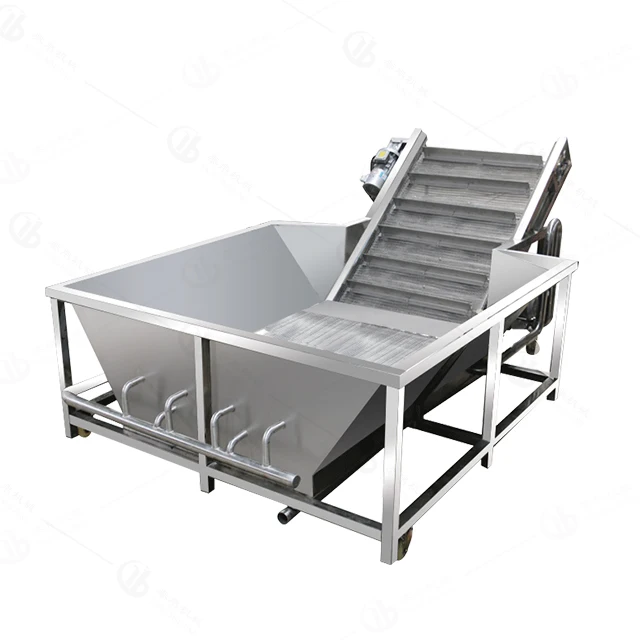 The fruit and vegetable washing machine is used to clean oranges, potatoes and other materials. The unique large pool is suitable for large batch cleaning. It can soak the materials and prevent them from bumping into each other when poured into the pool.