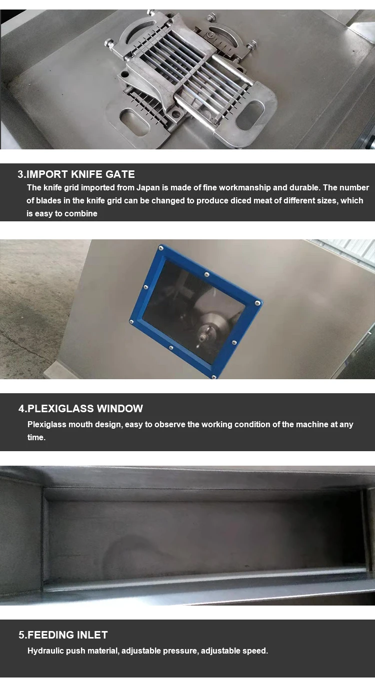 3.0mm 750w Fresh Meat Cube Cutting Machine With Cutting Amount 360kg/h