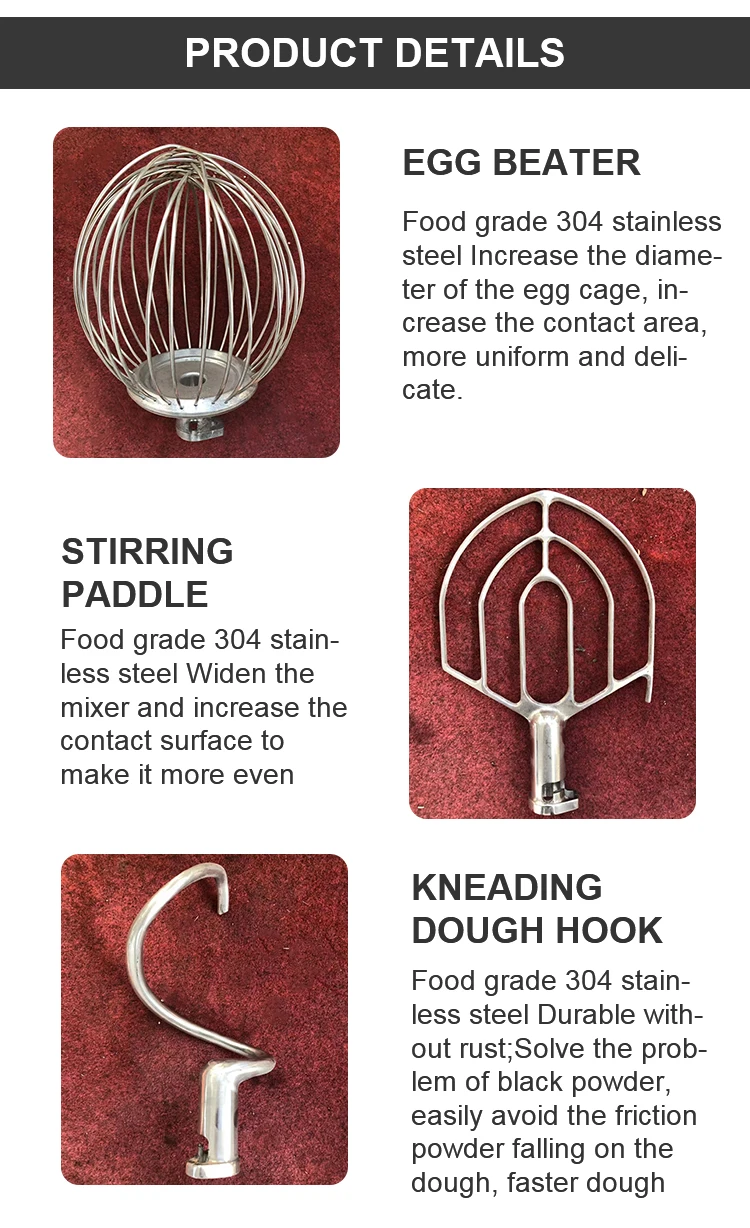 Modle | Rated voltage(v) | Power(KW) | Bowl volume(L) | Max kneading Capacity(kg) | Mixing speed(rpm) | Weight(kg) |