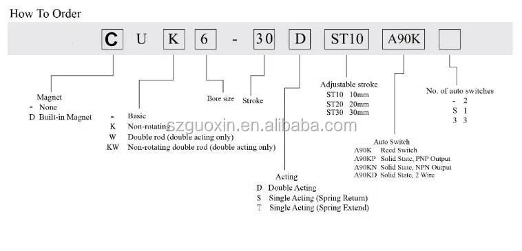SMC Aluminum Profile Square Pneumatic Air Cylinder CUK6-5D