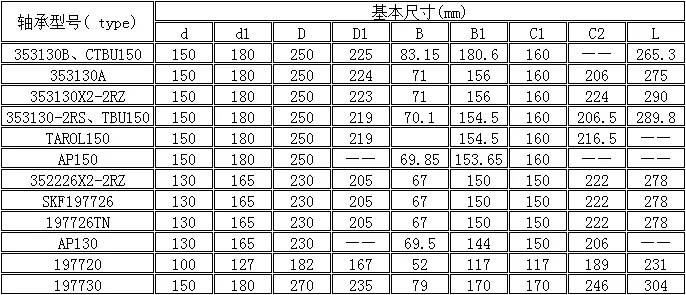 V OR-7030A) 、353130A 、353130X2-2RZ、SKF 353130-2RS (SKF TBU150) 、TBU150 (SKF ITALY V OR-7032) 、TAROL150/250TVP 808997 、AP150、197730