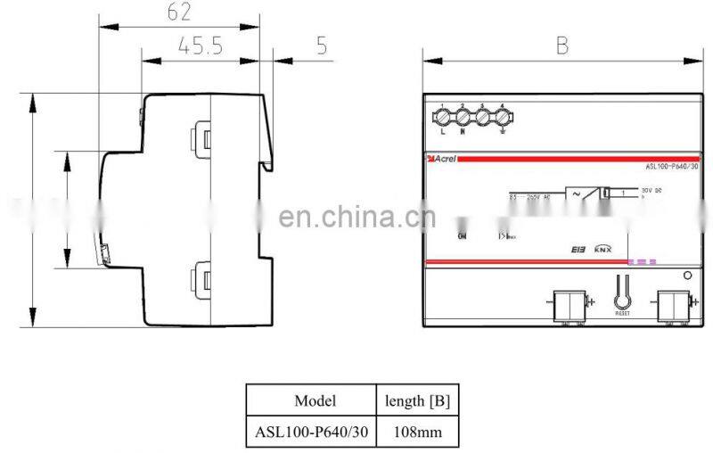 ASL100-P640/30 bus power module (hereinafter referred to as power supply) is a bus power supply based on Acrel-bus intelligent control system. All control modules on the bus are coupled with the power supply by the choker in the power supply. This product meets the enterprise standard Q31/0114000129C032-2017 ASL100 Intelligent Lighting Control System. The bus is connected by the standard EIB wiring terminal and standard KNX bus. After the reset key on the module is pressed, the power supply will be reset for 20s (the bus power supply is disconnected and the auxiliary power supply normally provides the power supply during reset period) and the bus and power supply are disconnected physically. If the power supply needs to be cut off for more than 20s during use, the power line needs to be cut off. This model of module is also attached with a 30V DC auxiliary output power supply. This auxiliary power supply may power on the external power module, such as IP module and touch screen and so on.