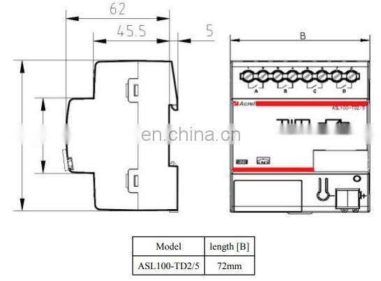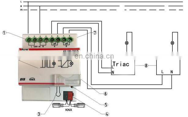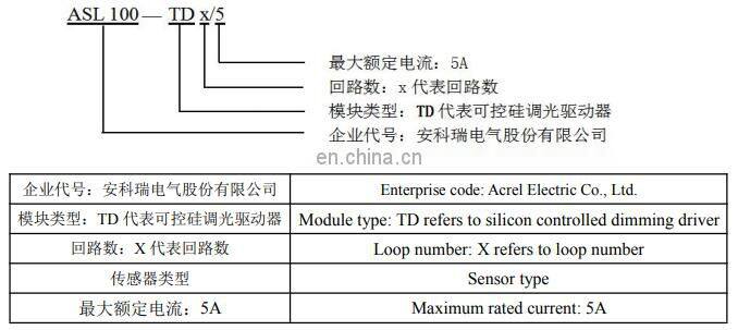 ASL100-TD2/5 silicon controlled dimming driver (hereinafter referred to as dimmer) is the dimming module of Acrel-bus intelligent control system. European KNX communication bus is adopted to achieve intelligent lighting control of large buildings and public buildings. The latest single-chip microcomputer technology is adopted by the dimmer. The dimmer is the intelligent control module with high stability and reliability and matches other control modules, such as smart panel and dry node, to achieve the intelligence of lighting control. The dimmer dims LED by directly controlling high voltage part. 30V DC voltage is used for module power supply at the communication end and is used for system communication