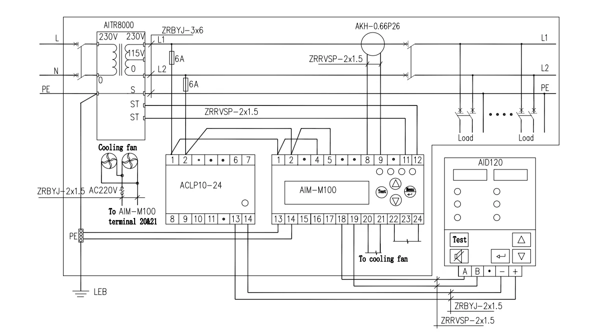 transformer, ACLP10-24 DC power supply, and AID series(AID100,AID120,AID130,AID150) centralized alarm