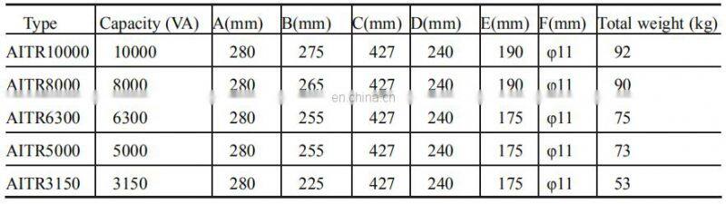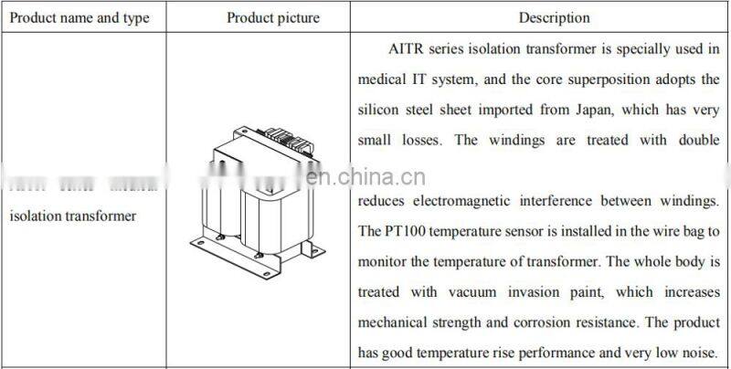 Table 2 Technical Parameters of AITR Series of Medical Isolation Transformer