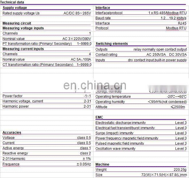 Multi-loop power meter, which can measure the grid parameters of 4 three-phase or 12 single-phase loops, including voltage, current, power, frequency, energy, demand, extreme value,total harmonic distortion rate,2-31 harmonic parameters such as wave,voltage and current imbalance,and multi-rate energy metering. The function module can be externally extended.