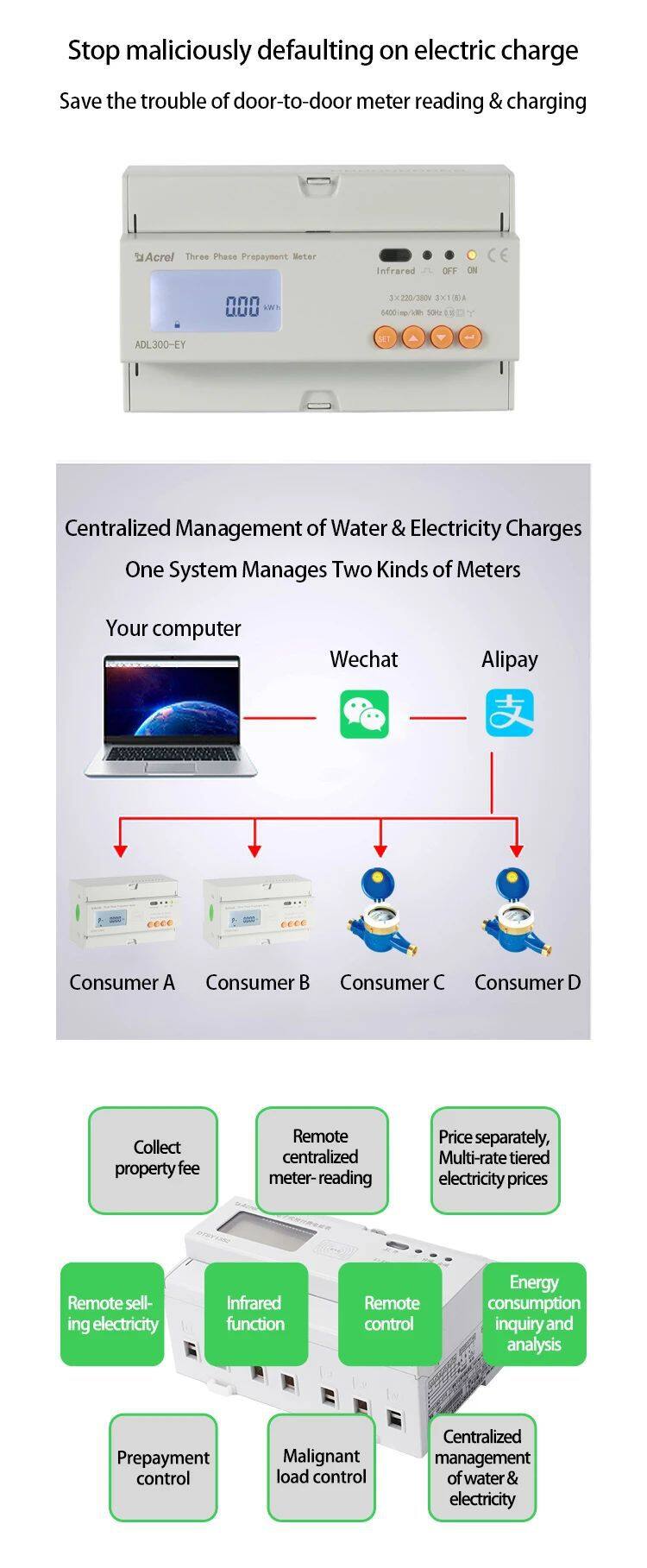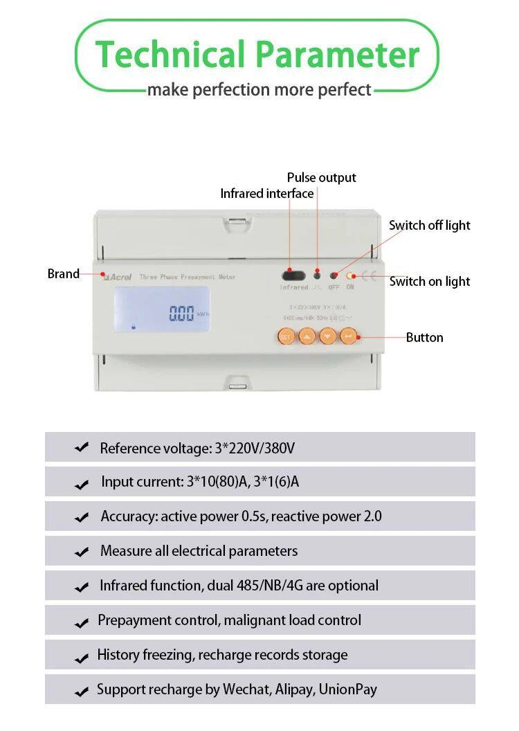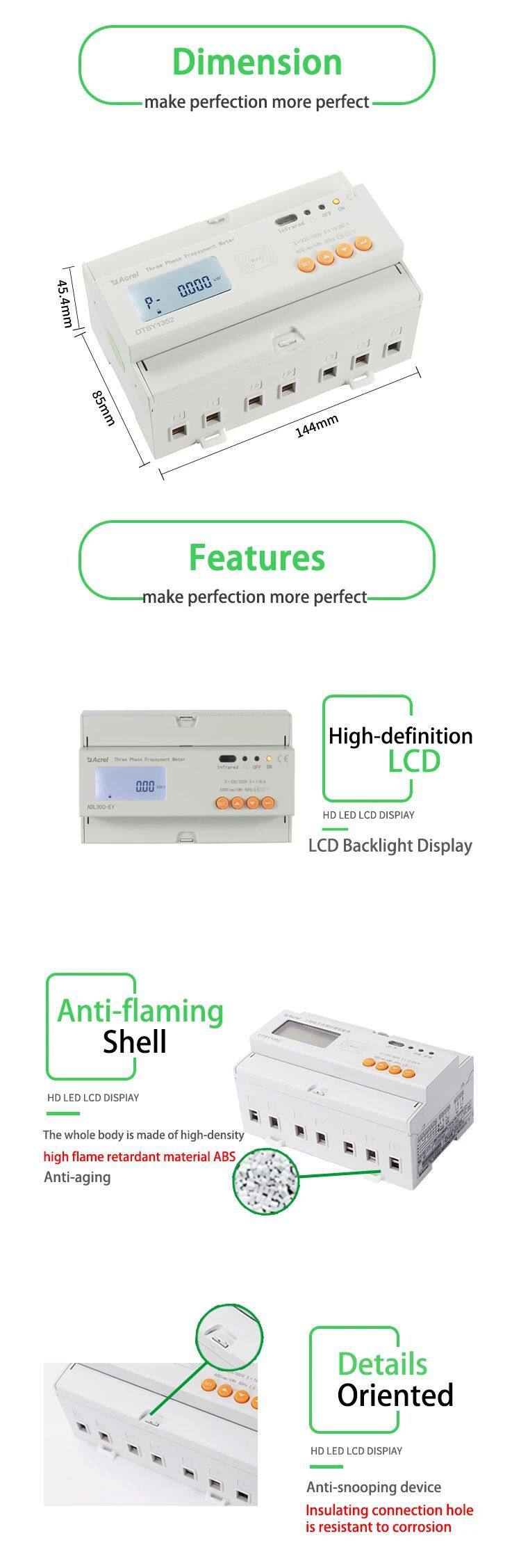 Acrel ADL300-EY Three Phase Smart Prepaid Energy Meter/Din Rail for Intelligent Communities CE