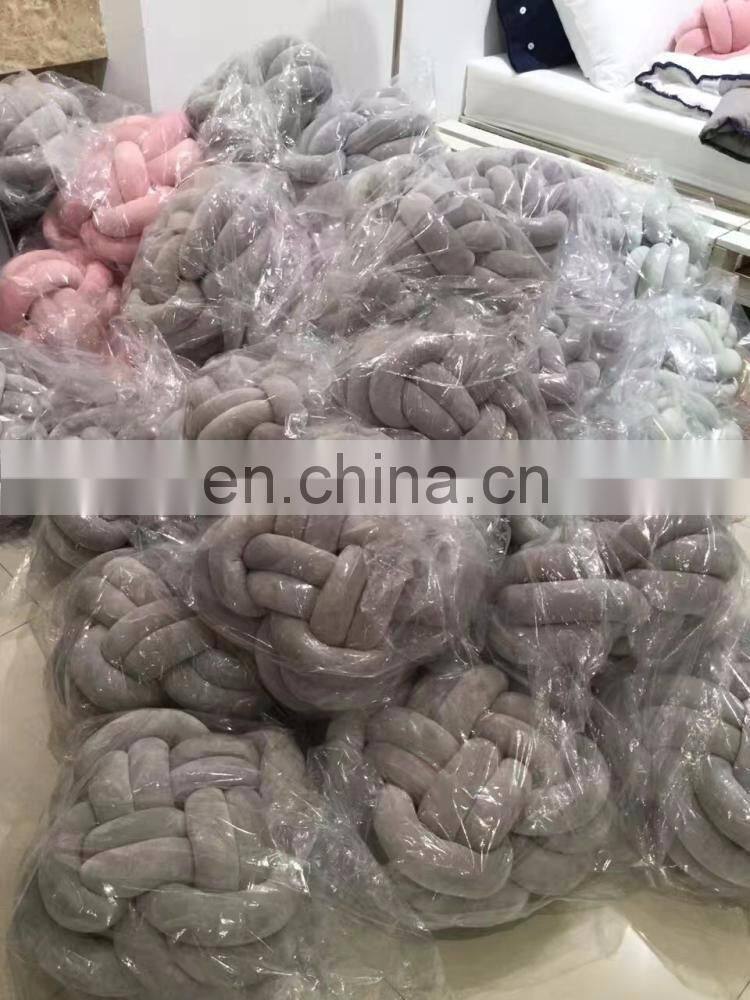 Mixed Colors Baby Crib Pillow Braided Crib Bumper Knot Decorative Bolster Pillow