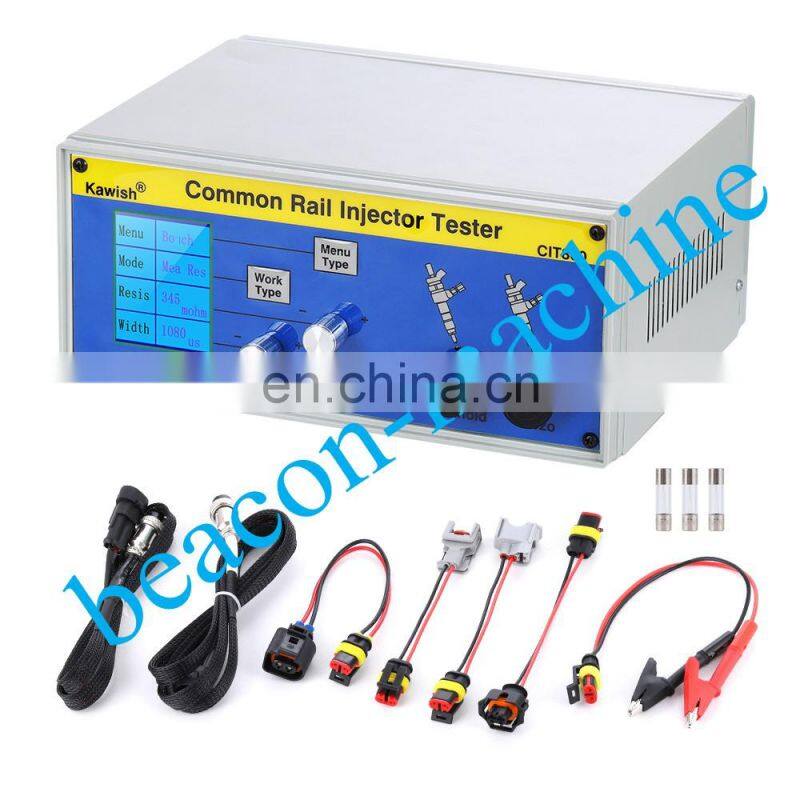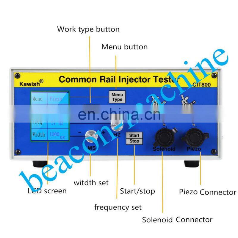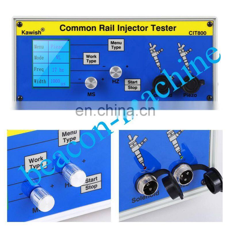 CIT800multifunction of common rail injector tester can accurately and effectively, to imitate ECU drive signal for each work condition of injector, such as pre injection, emission point, full load point conditions. Can drive a variety of brands, For Bossch injector,for Densoo,for Delphii and Piezo common rail injector.