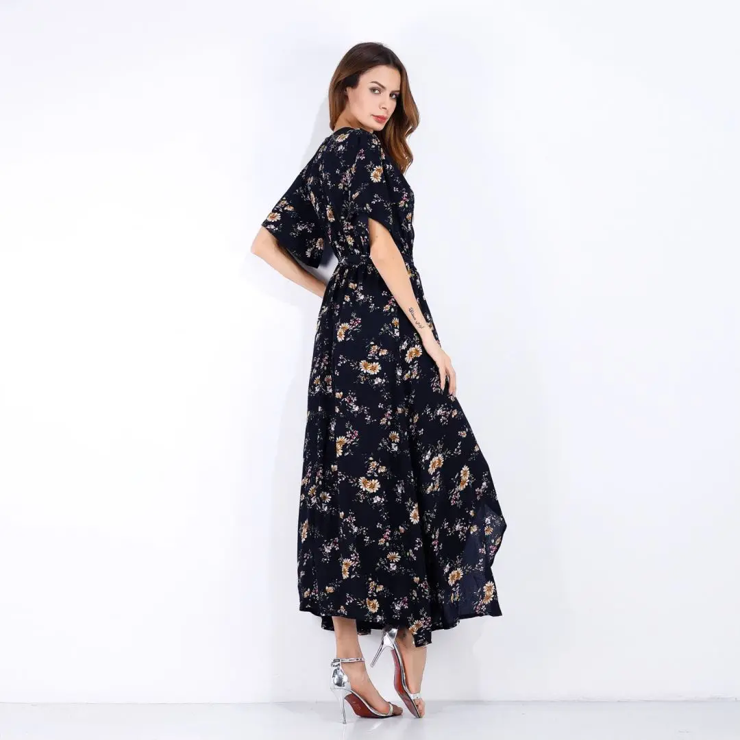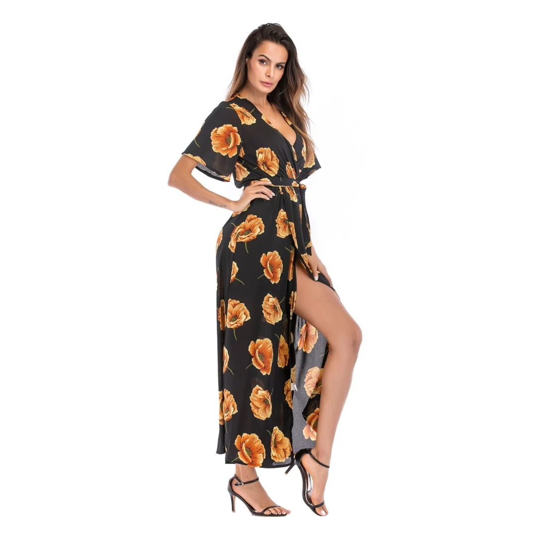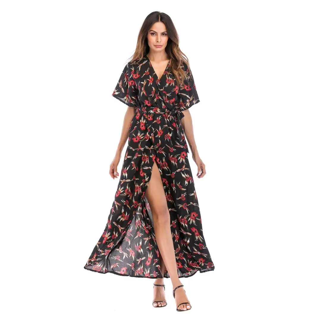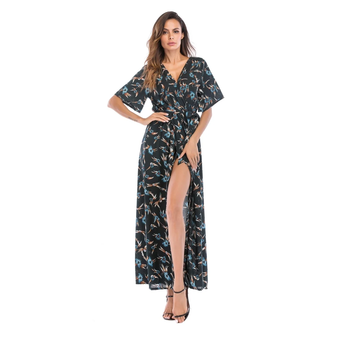 2020 Women's Explosion Long Short-Sleeved Floral Dress Women's Summer Vacation European and American Beach Skirt | ||||||
