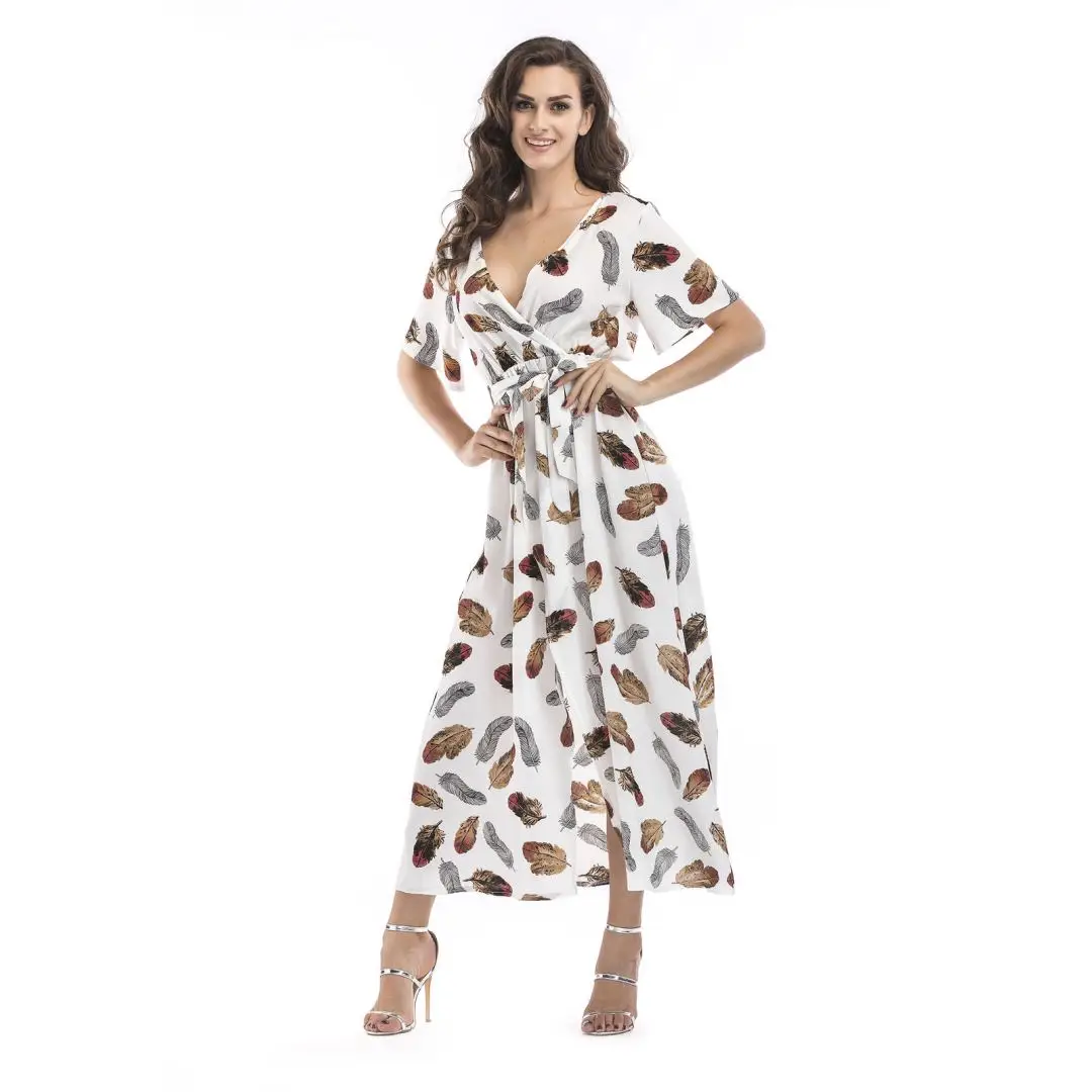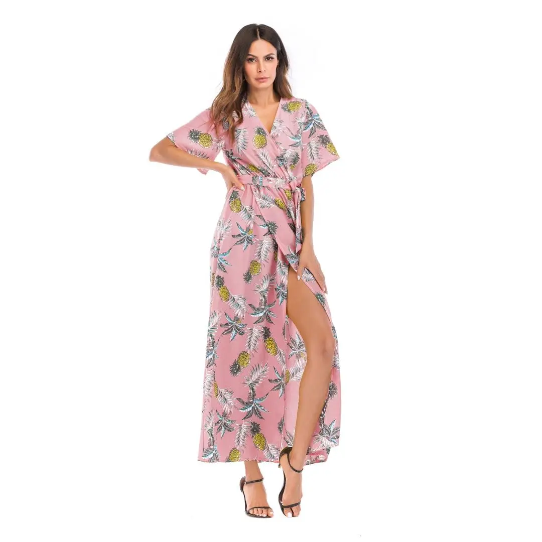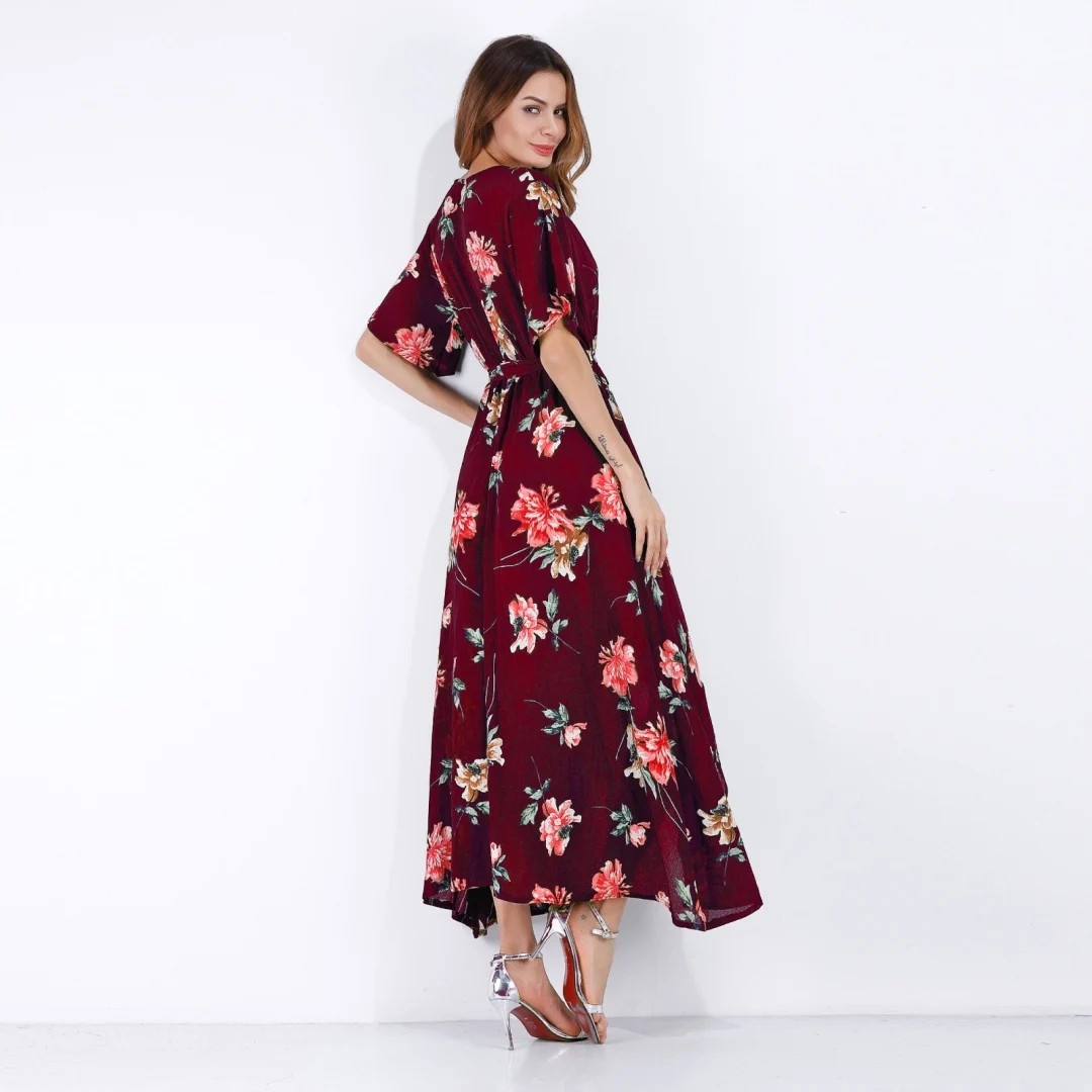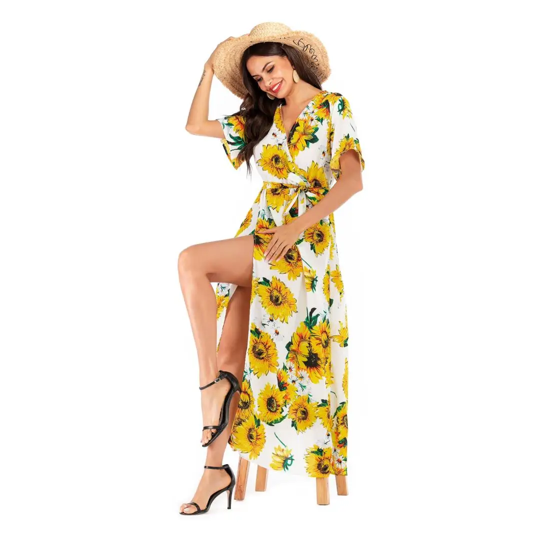 2020 Women's Explosion Long Short-Sleeved Floral Dress Women's Summer Vacation European and American Beach Skirt | ||||||