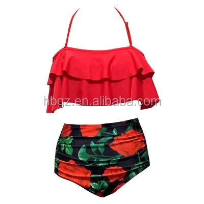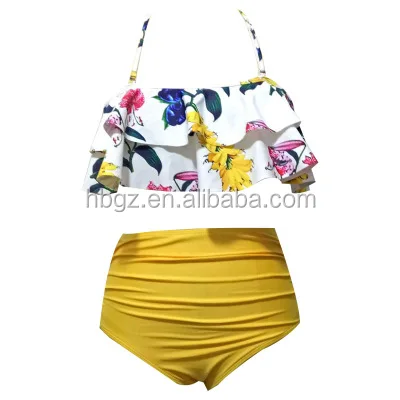Sexy lady lotus leaf high waist bikini swimsuit bikini | ||||||