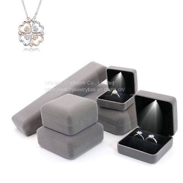 Custom LOGO Velvet Jewelry LED Light Ring Box High End Ring Bracelet Pendant Bangle Jewellery Boxes with Light