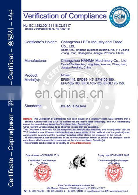 ★. We have received flail mower EFD125, we want to give a good compliment for your packaging, it looks perfect.I also showed LEFA machines to my friends, they have asked some questions about your machines and parts, then place an order after having figured out all.Thanks