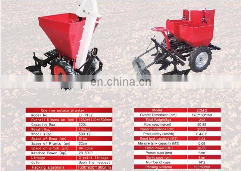 1. Ideal and modern machine for planting potato, onions, garlics,pachyrhizus and some tubers etc, suitable for different soils and agriculture demands.