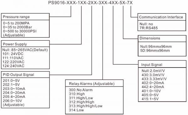 Pressure Range Code "050",The pressure range is 0~50MPa;