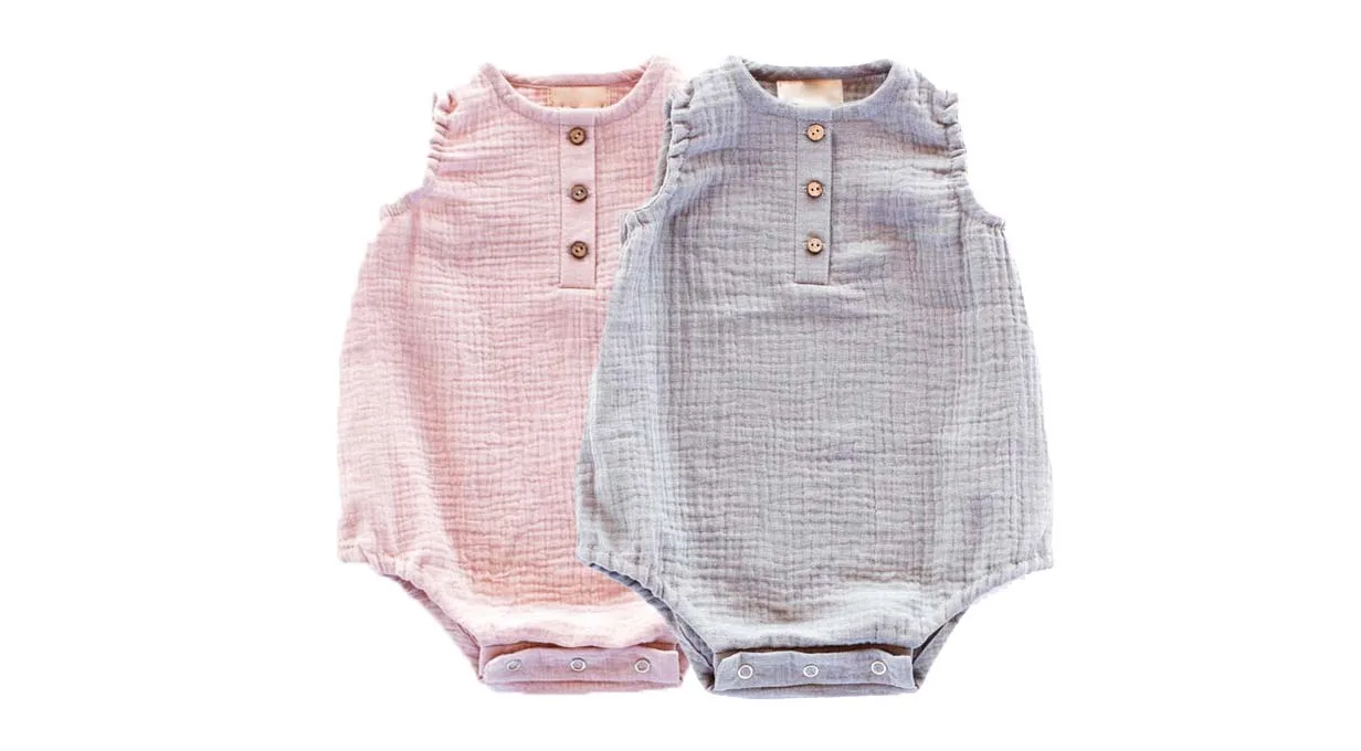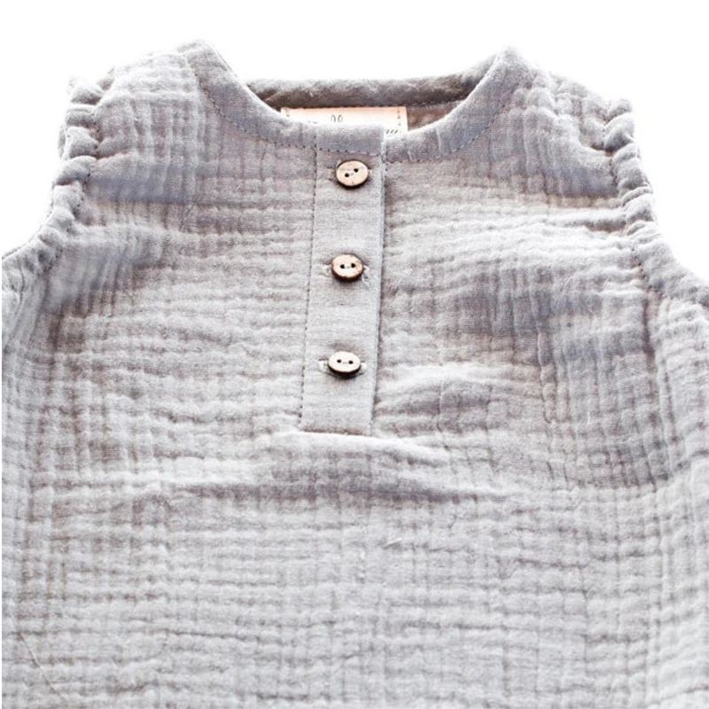 Woven 100% Cotton Snap Crotch Muslin Girls Baby Romper Bodysuit