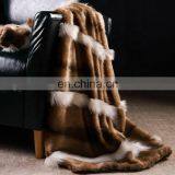 New Design Yellow Real Patchwork Faux Fur Winter Throw Blanket for Bed