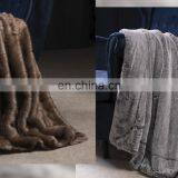 High Quality Custom Double Layer Embossed Gray Faux Rabbit Fur Throw Blanket For Winter