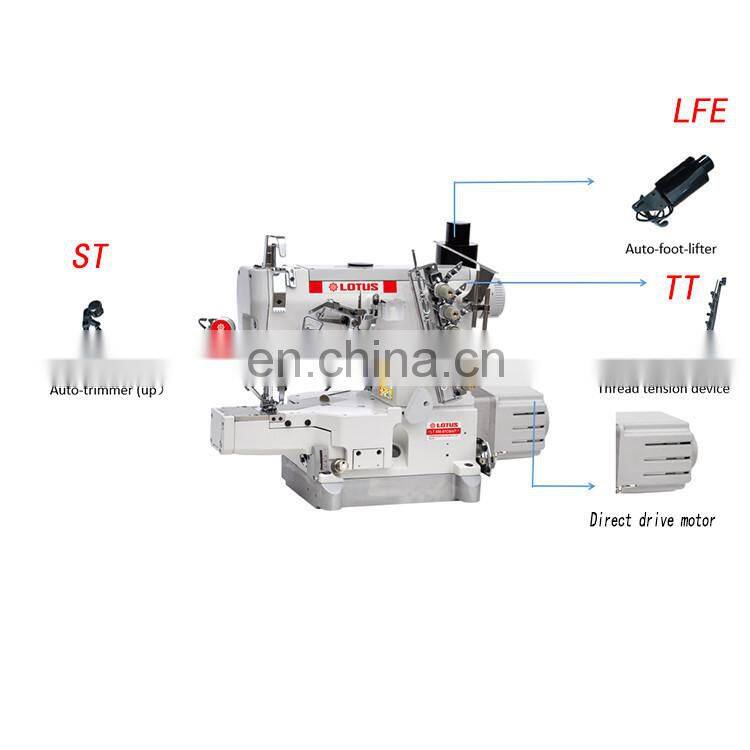 1.This machine is basic model of high-speed flatbed interlock machine,can be equipped different accessories to suit for different work.